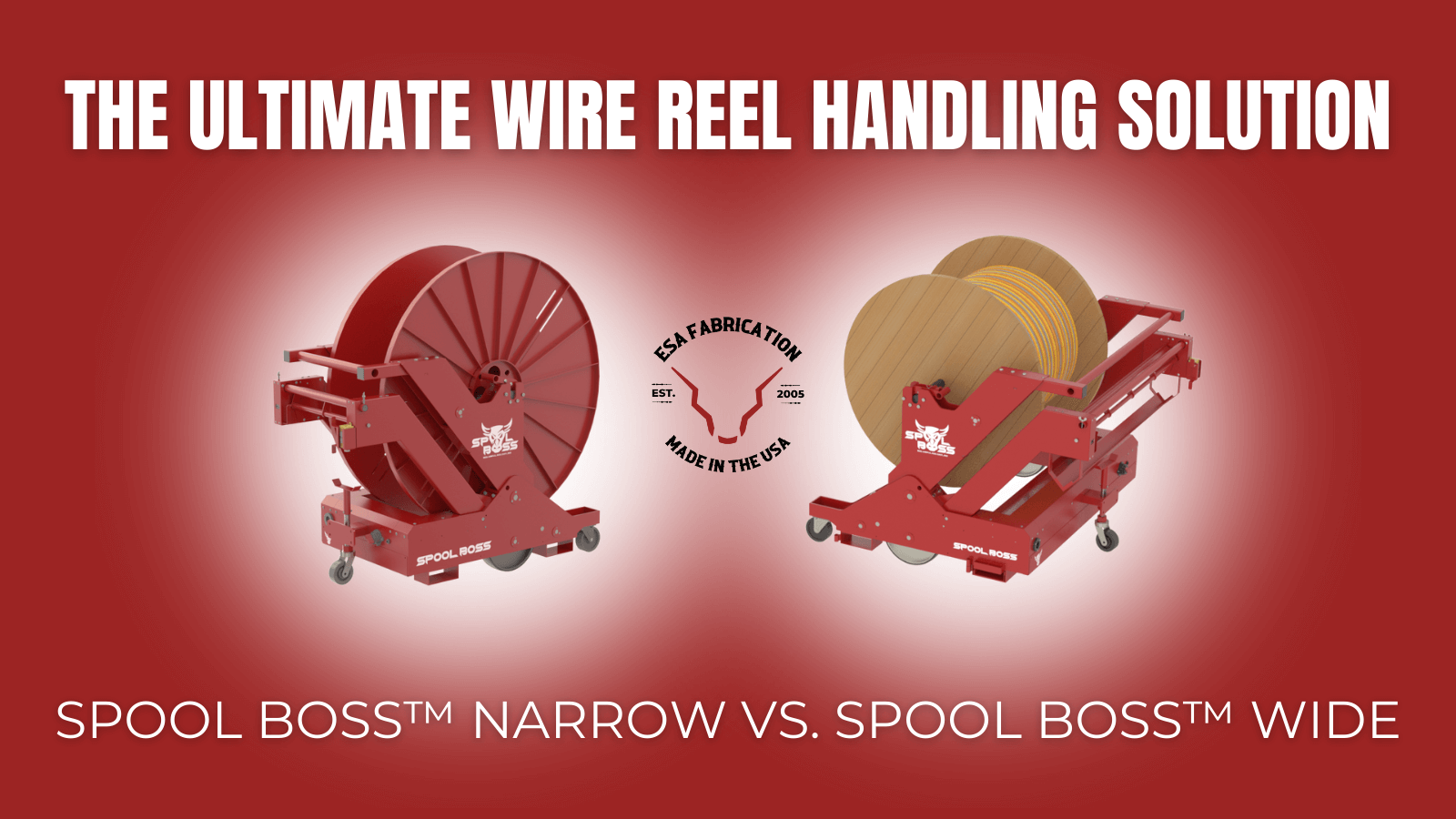 Heavy reels on job sites can be incredibly difficult to manage in a safe and effective manner. Most job sites rely on more traditional equipment like forklifts which can pose safety risks, and increase both manpower needs and additional costs. At ESA Fabrication, we saw the need for a solution that would revolutionize wire reel handling. Which is why we developed the Spool Boss™ – available in both wide and narrow models. The Spool Boss™ is a patented innovation designed to improve efficiency, safety and cost-effectiveness. Discover how the Spool Boss™ Narrow and Spool Boss™ Wide offer innovative, research-driven options for any job site.